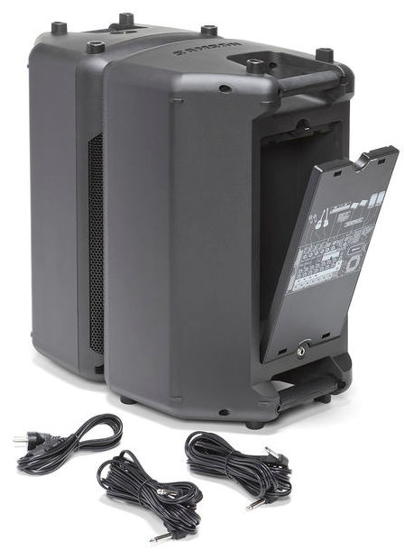 - 2x enceintes passives deux voies : woofer 10", moteur à chambre de compression 1" et embase 35mm pour stand enceinte (position moniteur 30°)