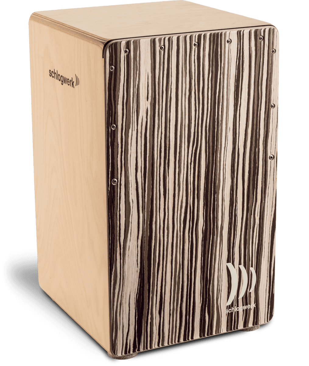 Fonctionnement : à l’intérieur du cajon, des brins appuient avec un angle précisément défini sur la surface de frappe. En jouant sur la surface de frappe, les brins se mettent à vibrer ce qui génèrent le son moderne de timbre cajon. Les brins du cajon 2inONE peuvent en outre être retirés d’un tour de main. Le cajon produit alors le son cubain traditionnel.