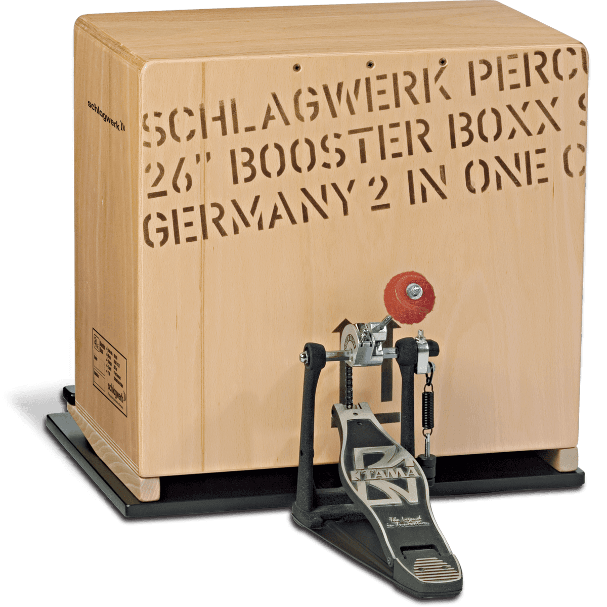 Booster Boxx + plateau supportL'élégance du cajon basse Schlagwerk souligne le rôle central des cajonistes dans chaque groupe. Le son rond et présent de la basse, combiné au son claquant et précis de la caisse claire apporte une puissance acoustique pure.Set composé du Booster Boxx (BC460) et du plateau support avec batte spécial (BP40).