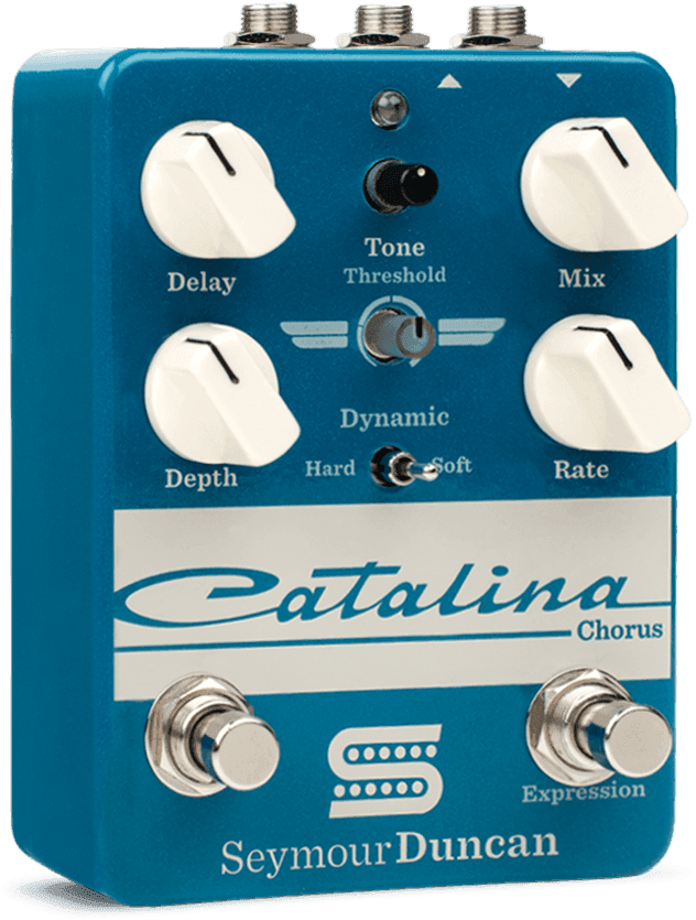 La pédale de chorus Seymour Duncan Catalina est entièrement analogique et protégée dans un solide boîtier métallique. Au menu : un true bypass, les contrôles de délai, mix, profondeur, taux, seuil, tonalité, et un contrôle de mode Hard/Soft dynamic.