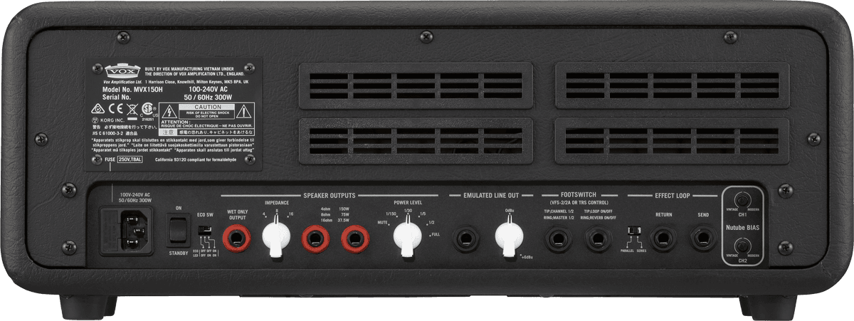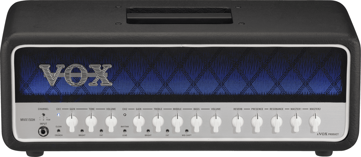 La tête MVX150H dispose de 2 canaux couvrant une grande variété de sons. En plus de l’égalisation, le canal 1 fournit les modes «clean/crunch», «bright» et «fat». Le canal 2 vous permet de basculer entre les modes «rhythm/lead», «bright», «fat» et «mid-shift». Les contrôles presence et resonance sont également présents dans la section master.